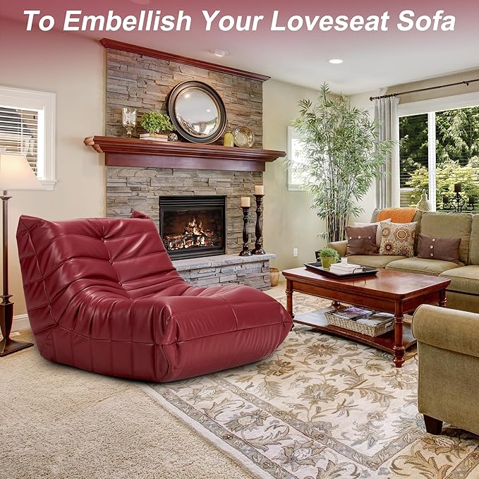 Hobestluk Giant Bean Bag Chair Lazy Floor Sofa, Fireside Sofa for Adults, Big Beanbag Faux Leather Armless Chair for Living Room Bedroom Dorm Office (WineRed, Single)