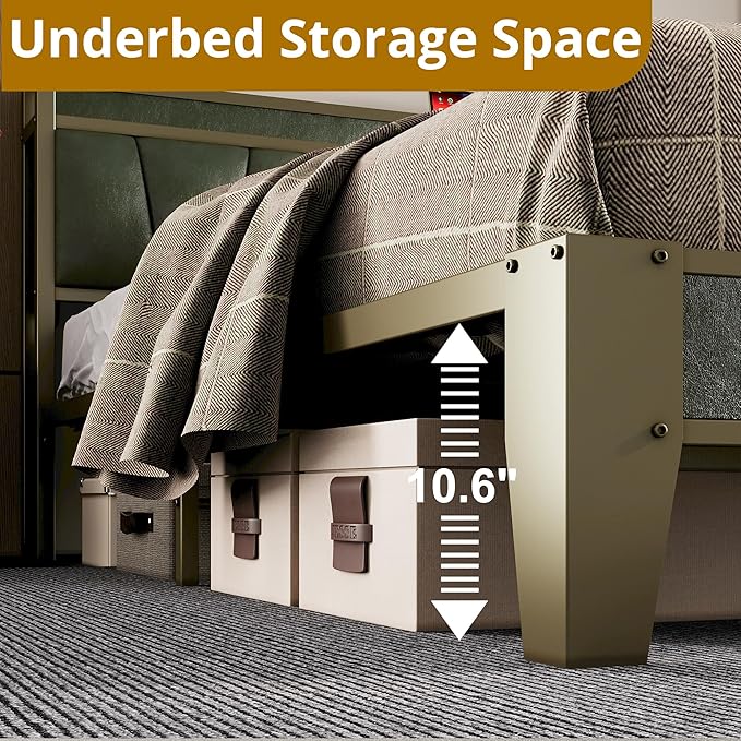 - Save Space and Time: 10.6 " under-bed clearance provides extra storage space. Each part of the king platform bed is clearly labeled and numbered on each and you just need to match those numbers in order to assemble