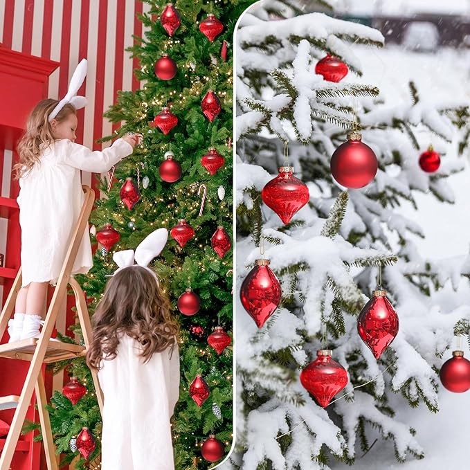 - Quality Material: these burgundy red Christmas ornaments are made from good notch glass, lending a magnificent and lustrous finish to each item; All 12 pieces in a set are carefully crafted to ensure their lightweight and robust nature; As glass blown Christmas ornaments, they promise not just aesthetic appeal but longevity, making them a worthwhile addition to your Christmas decor