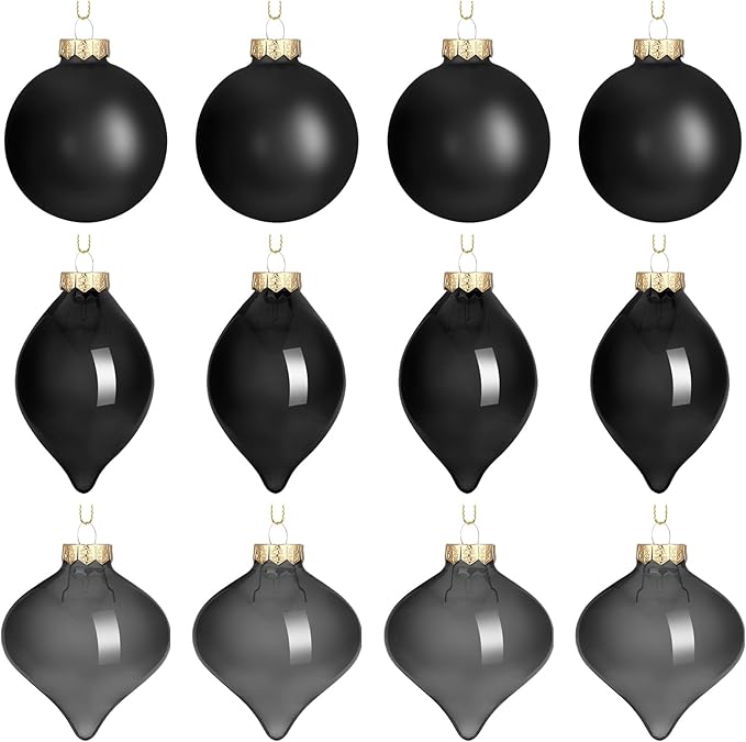 - Quality Material: these black Christmas ornaments are made from good notch glass, lending a magnificent and lustrous finish to each item; All 12 pieces in a set are carefully crafted to ensure their lightweight and robust nature; As glass blown Christmas ornaments, they promise not just aesthetic appeal but longevity, making them a worthwhile addition to your Christmas decor