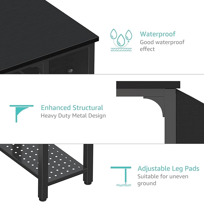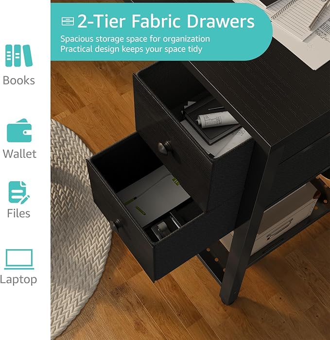 - Working Desk with Ample Storage Options: Computer desk with 2 𝙁𝙖𝙗𝙧𝙞𝙘 𝘿𝙧𝙖𝙬𝙚𝙧𝙨 and 1 storage shelves for super large storage space,you can try this two installation methods (left or right). It also have 1 side storage bag, perfect for holding magazines, notebooks, bags or small electronics