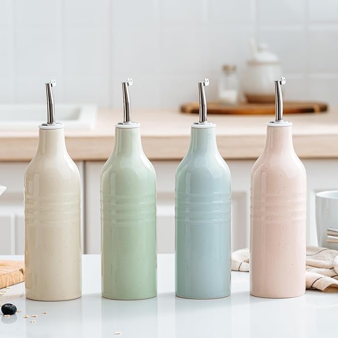 - KEEPS OIL FRESH - Exposure to light can cause olive oil to go rancid. This opaque olive oil dispenser bottle ceramic protects your olive oil or vinegar from harmful UV rays, keeping it fresh longer