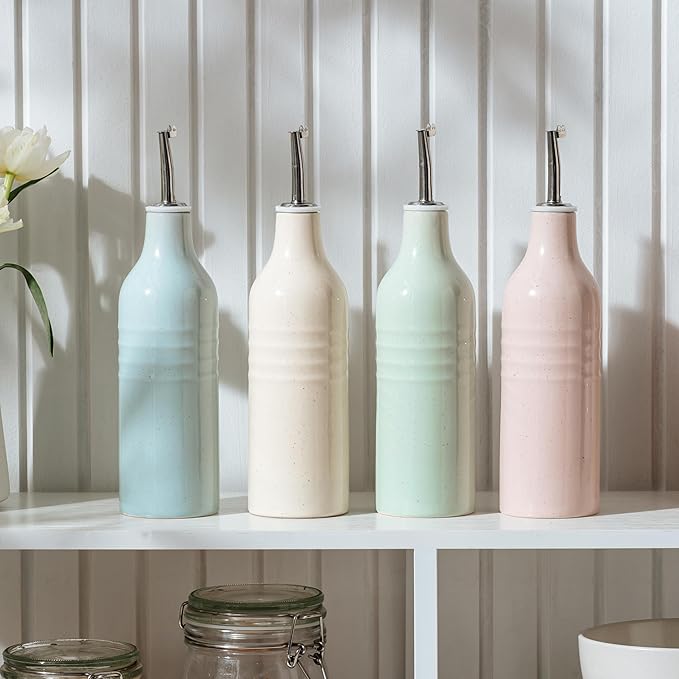 - KEEPS OIL FRESH - Exposure to light can cause olive oil to go rancid. This opaque olive oil dispenser bottle ceramic protects your olive oil or vinegar from harmful UV rays, keeping it fresh longer