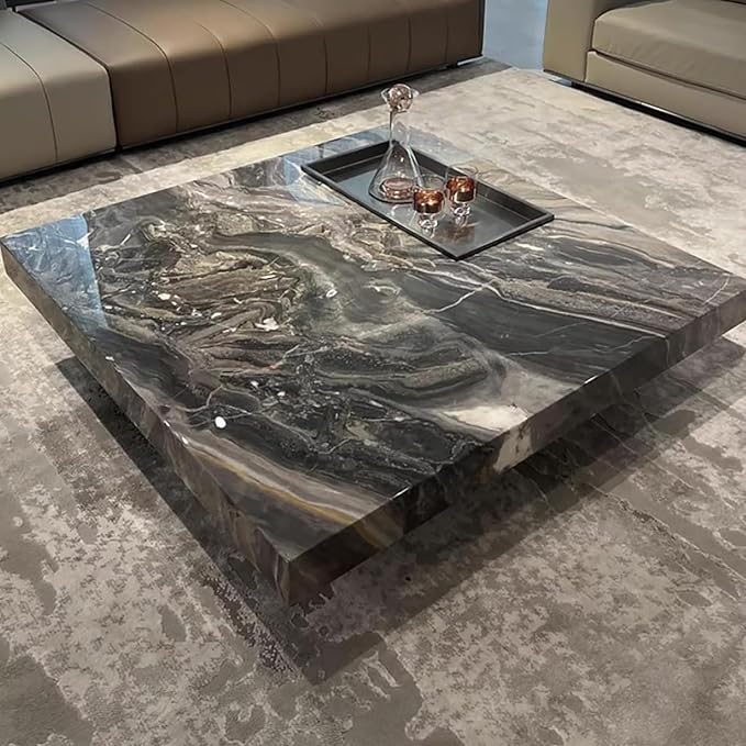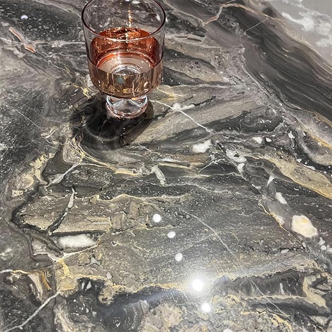 - MODERN LUXURY: The funky coffee table features a unique texture sintered stone tabletop with black stainless steel legs. The matching of gray and black exudes a elegant luxurious vibe, a great addition to any contemporary living space