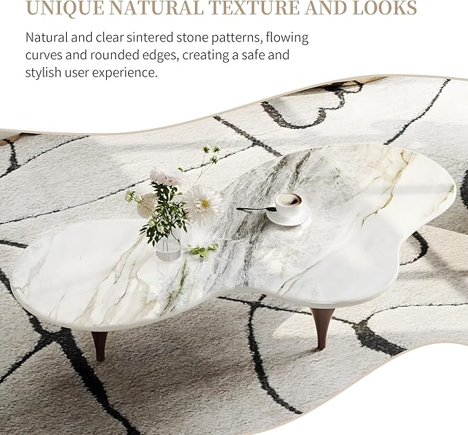 - STUNNING SINTERED STONE TOP: The Irregular coffee tabletop is made of premium sintered stone, boasting distinctive textures that natural beauty while offering excellent heat and scratch resistance, waterproof and easy to clean.
