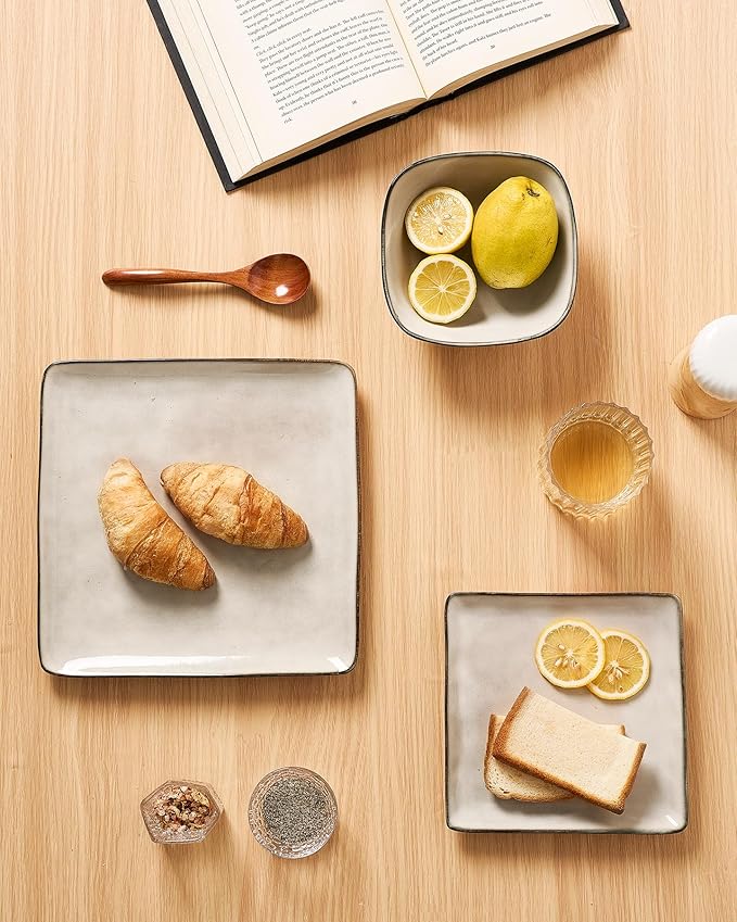 - 【12-Piece Dinnerware Set】This dish sets service for 4 that includes four large square 9.75 inch dinner plates, four 7.25 inch salad plates and four 6 inch cereal bowls. This kitchen plates and bowls set meet the need of your family well.