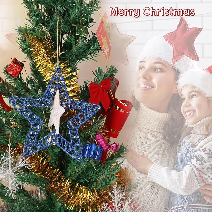 - Christmas Decor: with a shiny glitter finish, it is not easy to deform and does not fade.This beautiful Christmas star ornament will add to the entire Christmas theme, It is very suitable for winter Christmas-themed parties and Christmas tree decorations.