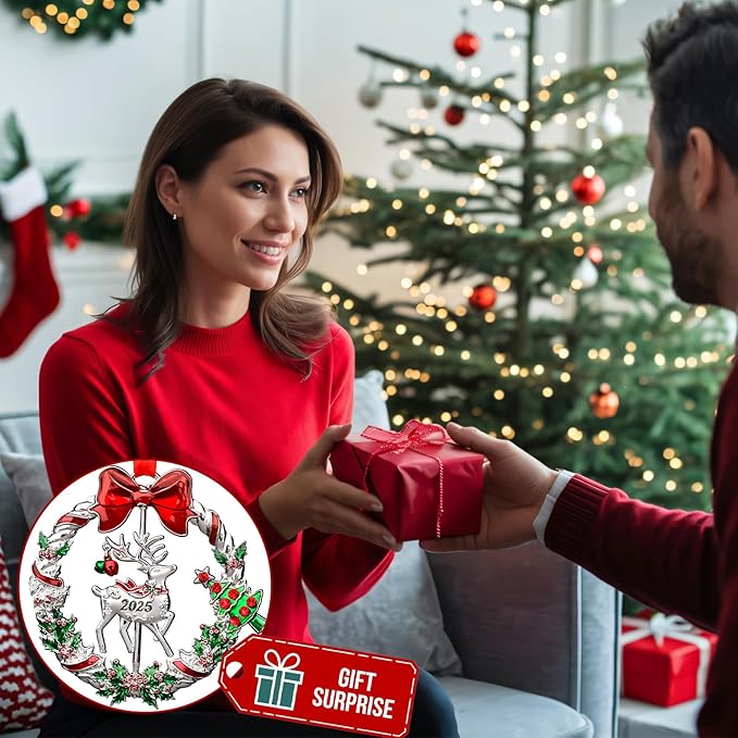 - 【High-quality Metal Material】2025 christmas tree ornament is made of high-quality metal, sturdy and textured, durable. The surface of the Christmas decoration is polished, colored using glue dripping technology, and inlaid with sparkling diamonds, make the ornament bright and exquisite.
