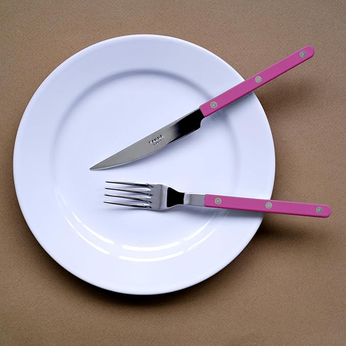 5-Piece Flatware Set - Bistrot Collection - Knife, Fork, Soup Spoon, Teaspoon & Dessert Fork - Stainless Steel & Nylon - Dishwasher Safe - Raspberry - Brilliant Finish
