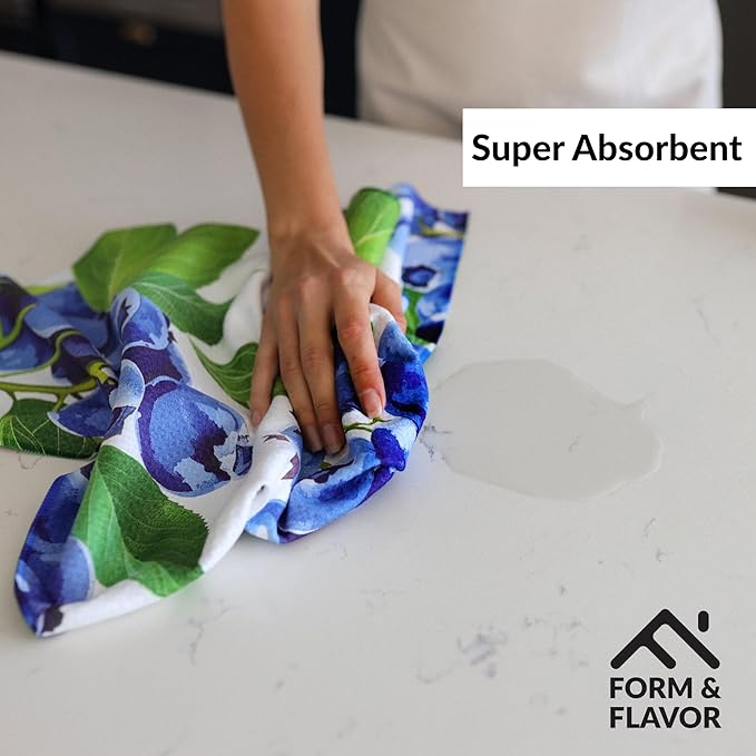 - 🫐 DECORATIVE KITCHEN TOWELS WITH QUICK-DRY MAGIC: Elevate your kitchen with our decorative kitchen towels, crafted from ultra-absorbent kitchen towels microfiber. Designed to dry dishes, hands, and spills rapidly, these cute kitchen towels save you time while looking stylish.