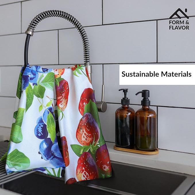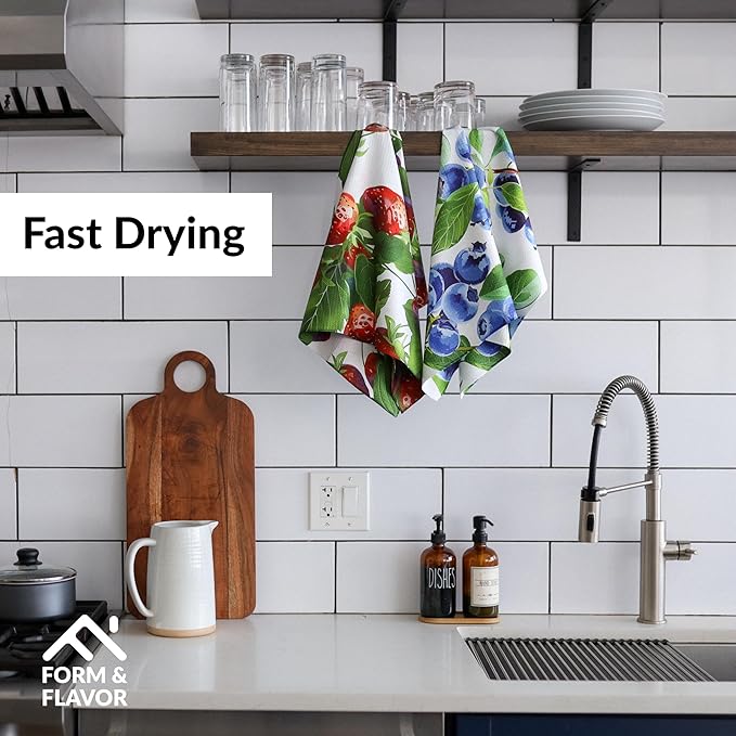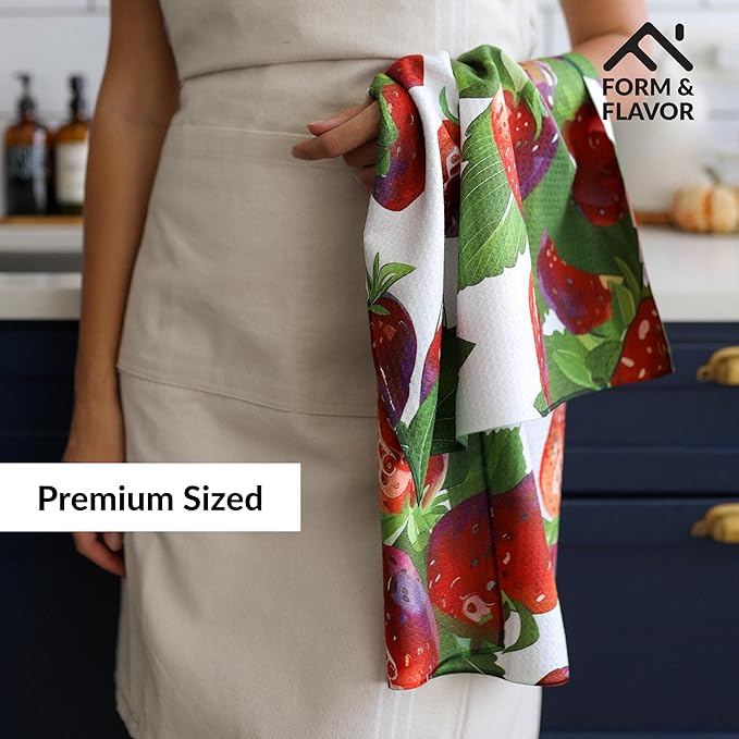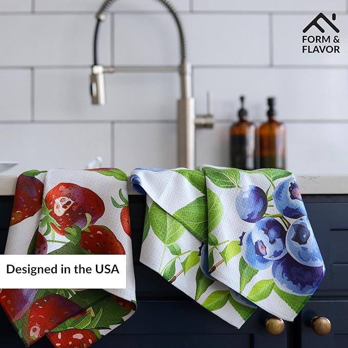- 🫐 VIBRANT COLORS WITH VERSATILE USES: Designed in the USA, these luxury decorative kitchen towels come in eye-catching hues. Both functional and beautiful, this strawberry kitchen decor is ideal for adding personality to your kitchen routine.