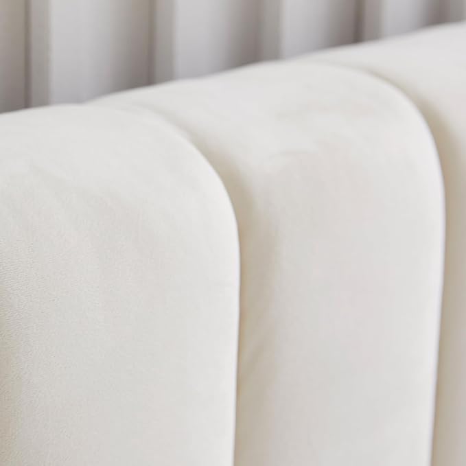 Livinia Full Size Elton Velvet Platform Bed, Upholstered Bed Frame with Vertical Channel Tufted Headboard Footboard, Strong Wood Slats, No Box Spring Needed, Ivory (Full)