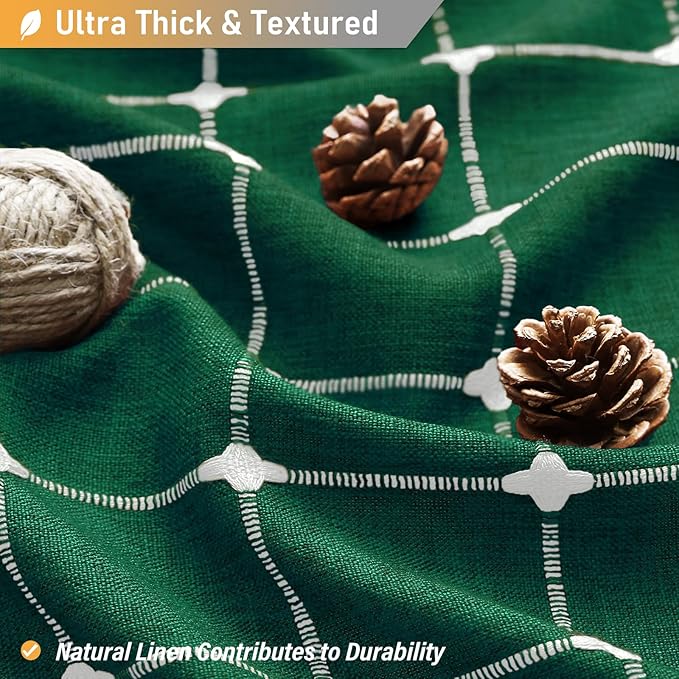 BTTN 78 Inch Long Shower Curtain - Boho Farmhouse Linen Ultra Thick Fabric Shower Curtain Set with Plastic Hooks, Tall Rustic Country Waterproof Shower Curtains for Bathroom - Emerald Green - 72x78