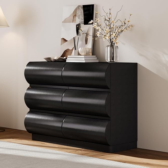 homary Black 6 Drawer Dresser Chest with Storage Cabinet Modern Chest of Drawers Storage Organizer Dresser for Bedroom Hallway Living Room (Black)