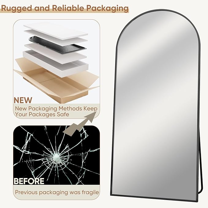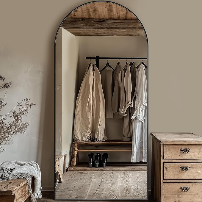 - 🪞【GRACEFULLY ARCHED DESIGN】The arched-top floor mirror is made of high quality aluminum alloy frame. The mirror frame is thin and lightweight and can be moved easily. Make your room look noble and elegant.