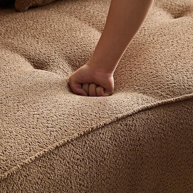 - 【Sturdy Build & High-Density Foam Support】Crafted with a solid wood frame and pocket spring system, this oversized curved sofa ensures lasting durability. The high-density foam filling offers balanced comfort and resilience, making it ideal for daily use and cozy gatherings with loved ones.
