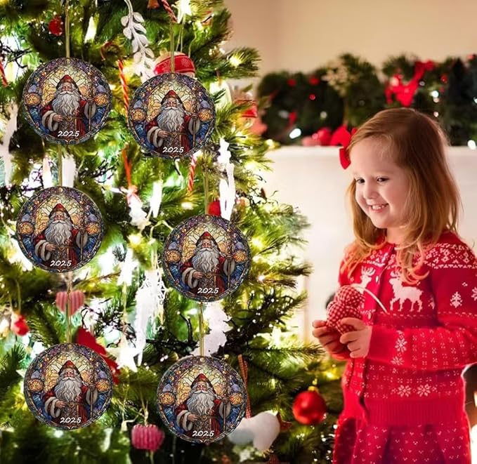 Santa Claus Ornaments 2025 in Stained Glass Style,2025 Christmas Ornaments, Round Fun Acrylic Decoration Gifts (Santa Claus)