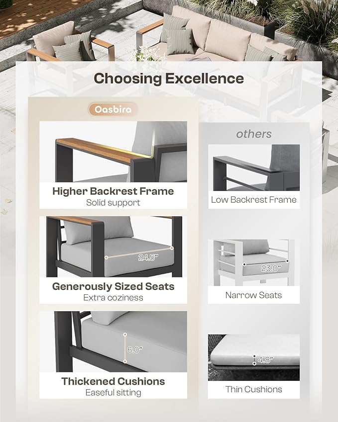 - 【Premium Materials】 The patio furniture features a superior aluminum frame with a powder-coated finish for enhanced durability and stability, and water-resistant olefin cushions for easy maintenance and long-lasting outdoor use.