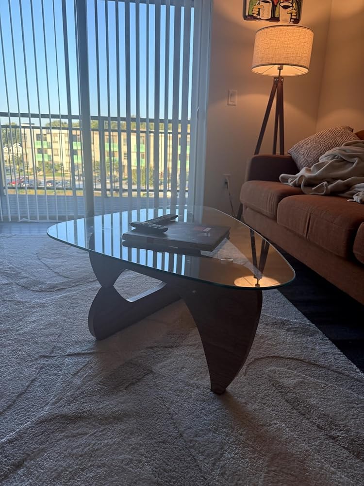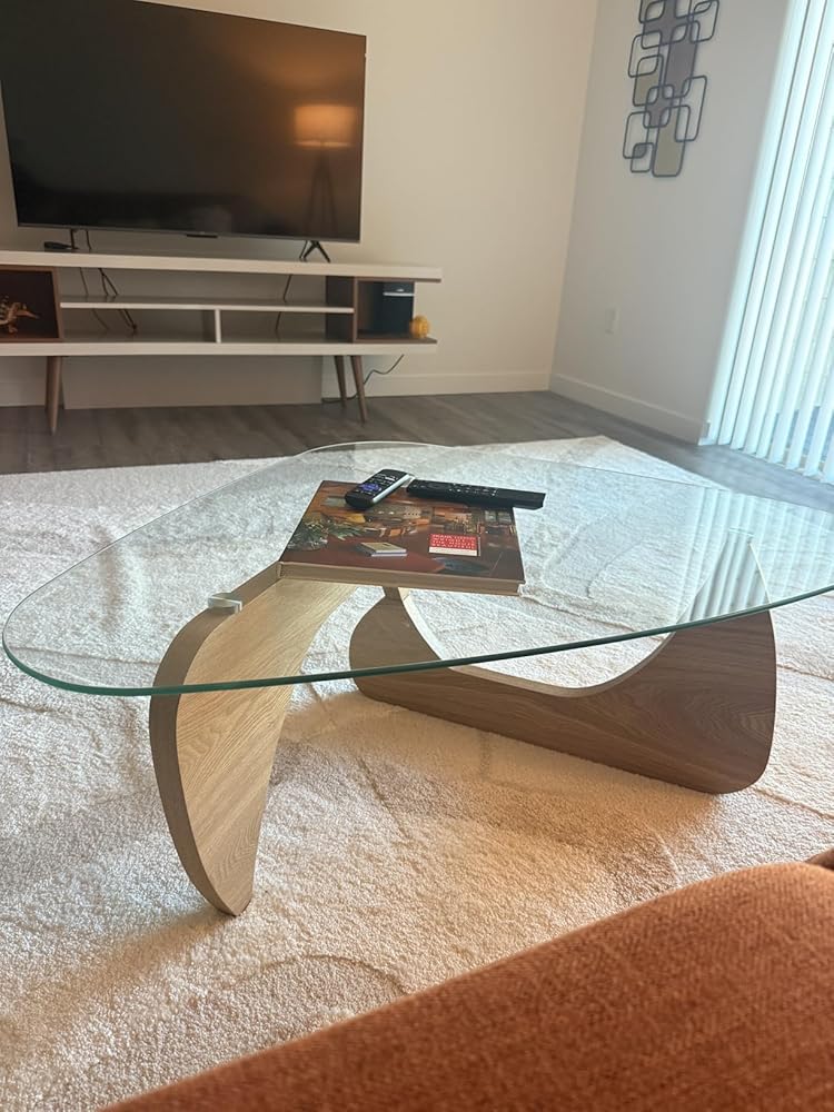 - Elegant Design: This coffee table features a sleek, modern design with a tempered glass triangle top and MDF legs for a touch of sophistication.