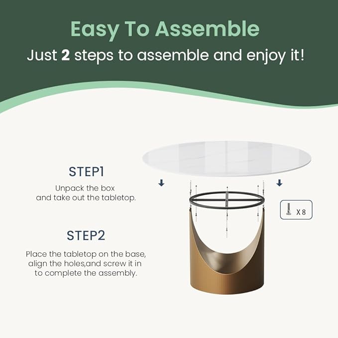 - Easy to Assemble: POVISON round dining table is easy to assemble, please put the sintered stone tabletop on the base and tighten it with screws to complete the installation. It is recommended that two people work together to complete the installation. The round dining table for 6 will be sent in two packages, and the time you receive each package may be different. (Product Weight: 300 LBS, Product Size: 59.06"W x 59.06"D x 29.53"H)