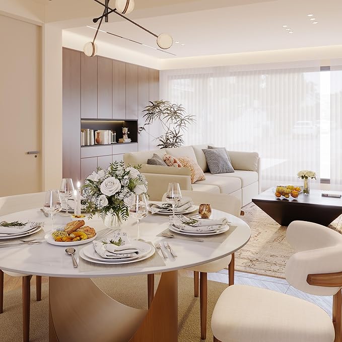 - Smooth Edge Design: The dining tabletop pattern is glossy white marble. Thickness of the tabletop is 12mm, and the edge of the tabletop adopts a humanized smooth edge design to prevent collision, making your family and pets feel more at ease at home. The size of this round dining table is 60 inches, table is recommended for 4-6 people