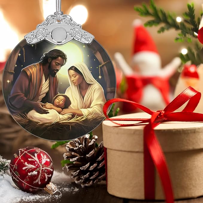 Nativity Christmas Ornaments, 3" Stained Glass Christmas Decor, Religious Ornaments for Christmas Tree, Christian Gifts for Kids, Religious Gifts for Women, Perfect for Holiday Party, Window, Tree