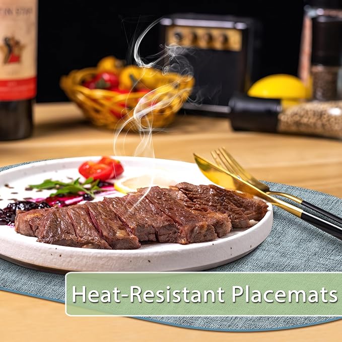 - Heat-Resistant Design: Our table placemats set of 4 for dining table are designed with a double-layer structure, which can effectively prevent the hot pot from scalding the table, and the heat-resistant design can also protect the table from scratches, spills, and daily use while keeping their elegant appearance intact
