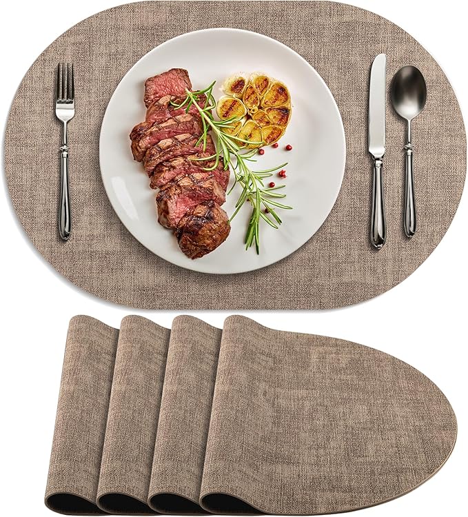 - Wide application: These table mats set of 4 are suitable for various occasions, such as family dinners, parties, restaurants, hotels, etc., adding a touch of elegance to your dining experience. These oval placemats come in variety of colors and sizes to suit different styles and preferences. Friendly reminder: Colors may appear slightly different due to screen and lighting variations