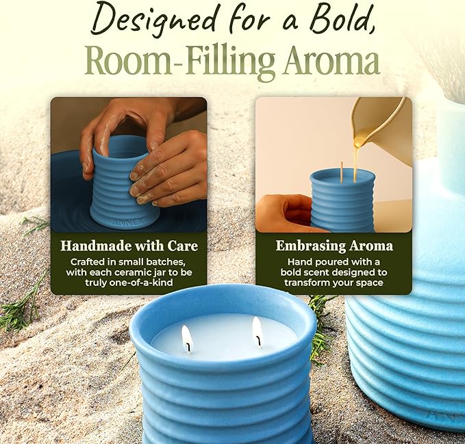 - 🕯️HANDMADE SOY CANDLES WITH LUXURY SCENTS: Over 500,000 customers have enhanced their homes with Annex handmade soy candles for women. Featuring elegant scents such as lavender, vanilla, eucalyptus, peppermint, rose, sandalwood, and volcano. Designed to provide long-lasting fragrance in any space. Each candle is thoughtfully crafted with a clean burning of 50 hours with thoughtfully selected ingredients.