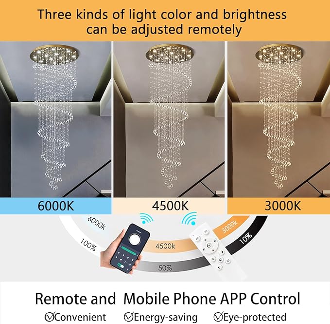 - Remote Control Chandelier - The chandelier can be used with voltages in the range of AC 110V to 240V. Set lighting color from warm light 2700K to day light 6000K, and dimming dark or bright any time (Note: Chandelier itself has a dimmer, Do not use with any dimming system or dimmer switch)