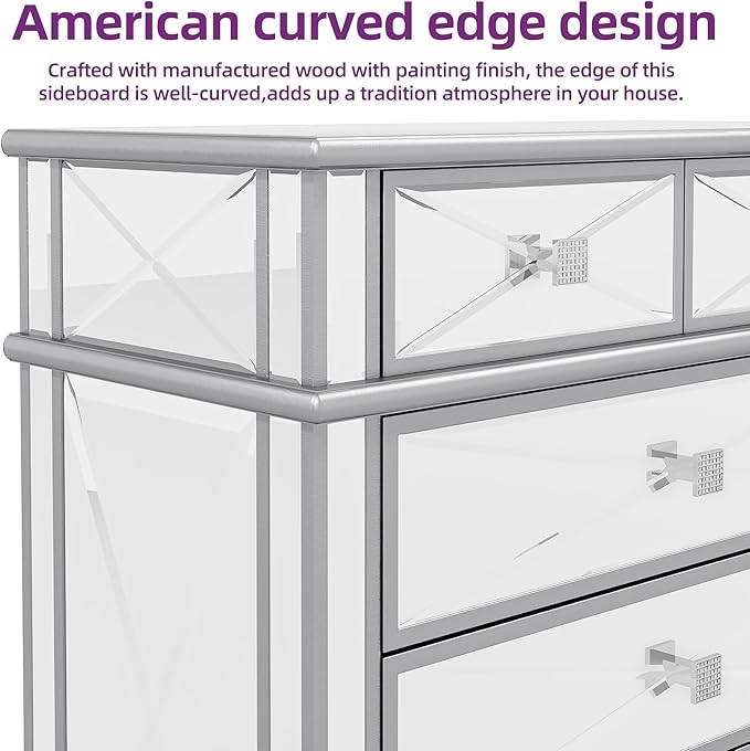 - Sufficient Storage Design: This mirrored chest of drawers comes with 5 drawers, The first two drawers measure: 11"D x 12"W x 4.7"H, other drawer dimensions for 11"D x 6.3"W x 27" H.