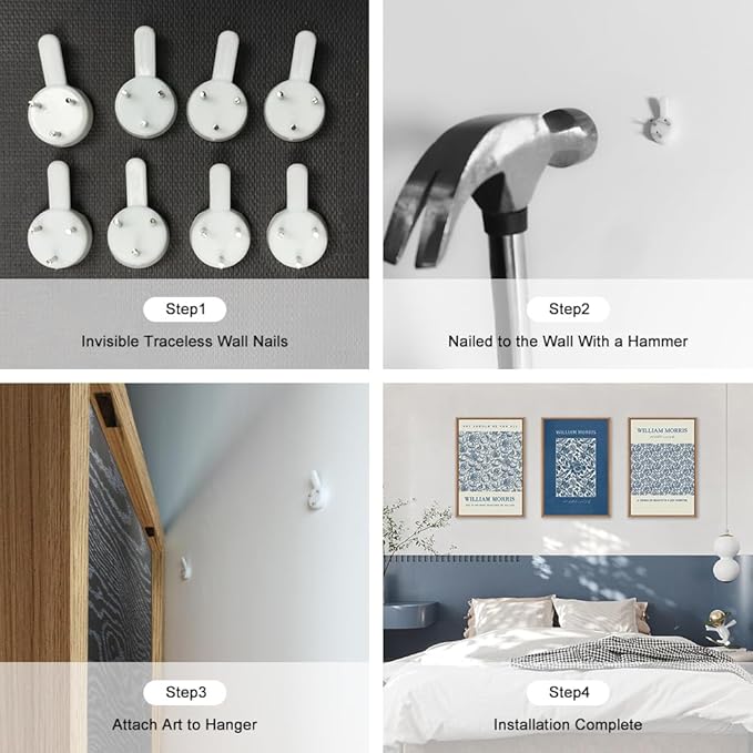 - 【Easy to Hang】16×24 inches×3pcs (40×60cm×3pcs) William Morris blossom landscape frame set is easy to hang, ready to use, with metal hooks and non-marking nails. It takes only 5 minutes to finish hanging.