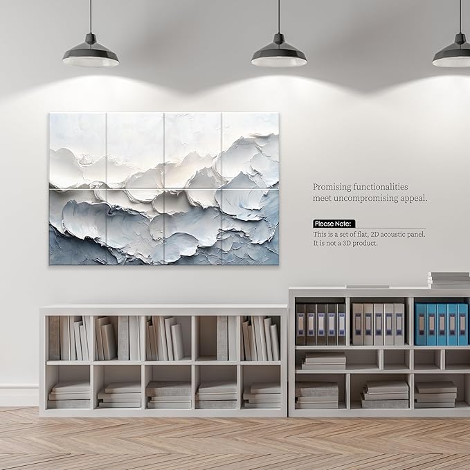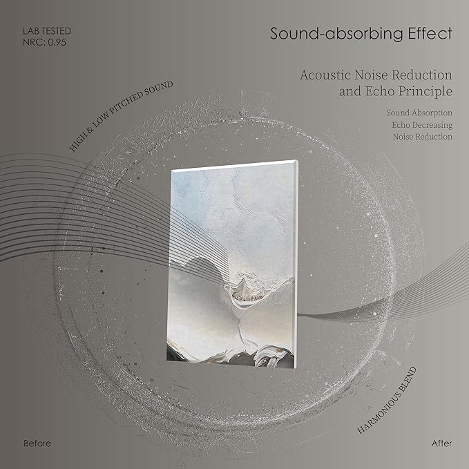 - PREMIUM SOUND CONTROL -- Serious about acoustic treatment? Avoid acoustic foam. Our art acoustic panels, sized at 16 x 12 inches each, come in a 8-pack and offer superior noise dispersion and echo elimination, enhancing your sound experience and room decor.