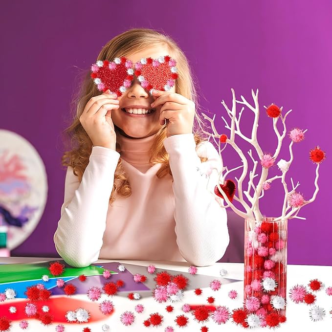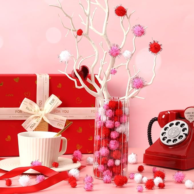 - Sufficient Quantity: Each Valentines pom poms set contains 600 pieces shiny pink and red pom poms, including 3 romantic colors of red, rose and white, which are sufficient to meet your various needs such as decoration, manual DIY and party layout