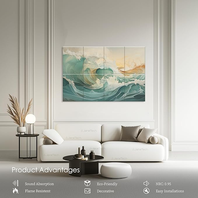 8 Pack Art Acoustic Panels 48x32 Inches Acoustical Wall Panels Decorative Sound Dampening Panels for Studios, Offices, Theaters, Adhesive Included