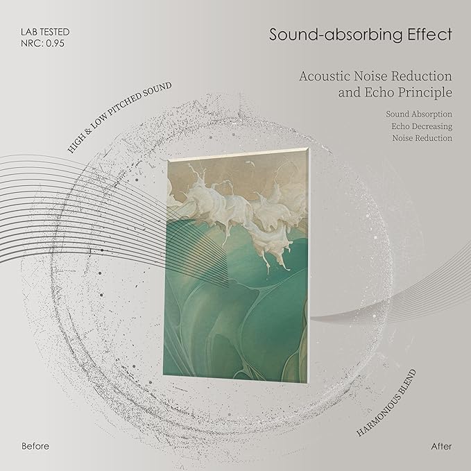 - PREMIUM SOUND CONTROL -- Serious about acoustic treatment? Avoid acoustic foam. Our art acoustic panels, sized at 16 x 12 inches each, come in a 8-pack and offer superior noise dispersion and echo elimination, enhancing your sound experience and room decor.