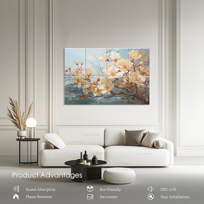 8 Pack Art Acoustic Panels 48x32 Inches Sound Absorbing Panels Acoustic Treatment for Studios, Offices, Theaters, Adhesive Included