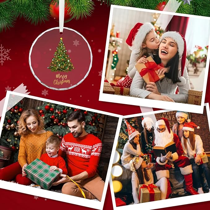 Christmas Tree Ornaments, Glass Christmas Ornament, Elegant Round Holiday Decoration for Christmas Tree, Merry Christmas Hanging Ornament for Holiday Home Décor, Gift Keepsake
