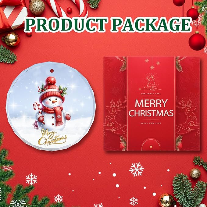 - Festive Snowman Design: Features a charming snowman wearing a scarf and hat, surrounded by festive details. The "Merry Christmas" text adds a joyful holiday touch, making it perfect for Christmas tree ornaments.