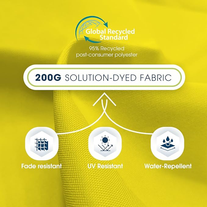 - UPGRADED ECO-FRIENDLY &RECYCLED FABRIC: This maket umbrella has a GRS certified canopy that is made of recycled Polyester Draw-Texturing-Yarn. This PU coated canopy has a US Standard AATCC 16 Grade 5 colorfastness to light, the thick high quality material provides excellent UV resistance, water proofing and fade resistance.