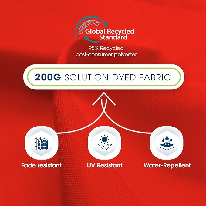 - EXCELLENT RECYCLED FABRIC CANOPY: This patio umbrella has a GRS certified canopy that is made of recycled Polyester Draw-Texturing-Yarn. This PU coated canopy has a US Standard AATCC 16 Grade 5 colorfastness to light. The thick material provides excellent UV resistance and is water-resistant up to 800 pa’s of pressure.