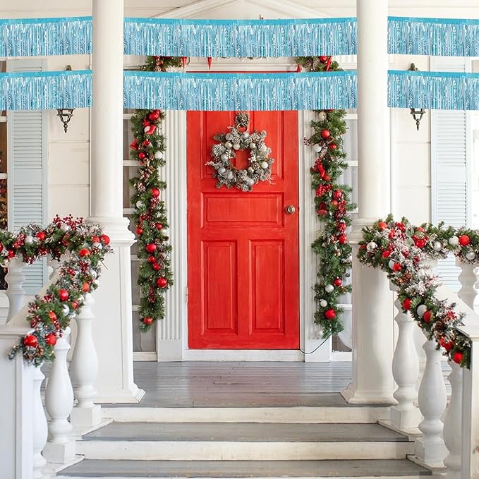 12 Pack 10 Feet Metallic Foil Fringe Garland Tinsel Streamers Banner, Light Blue Wall Hanging Tinsel Fringe Banners for Parade Floats, Wedding, Birthday, Christmas, New Year Party Decorations