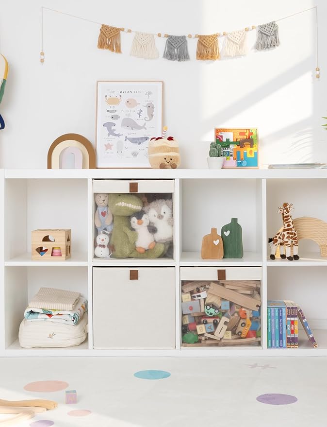 - Soft PU Pull-Tab: Equipped with soft and sturdy PU handles, these cube storage bins offer a smooth and comfortable grip. Designed for convenience, they make it simple to transport your storage cubes from one location to another.