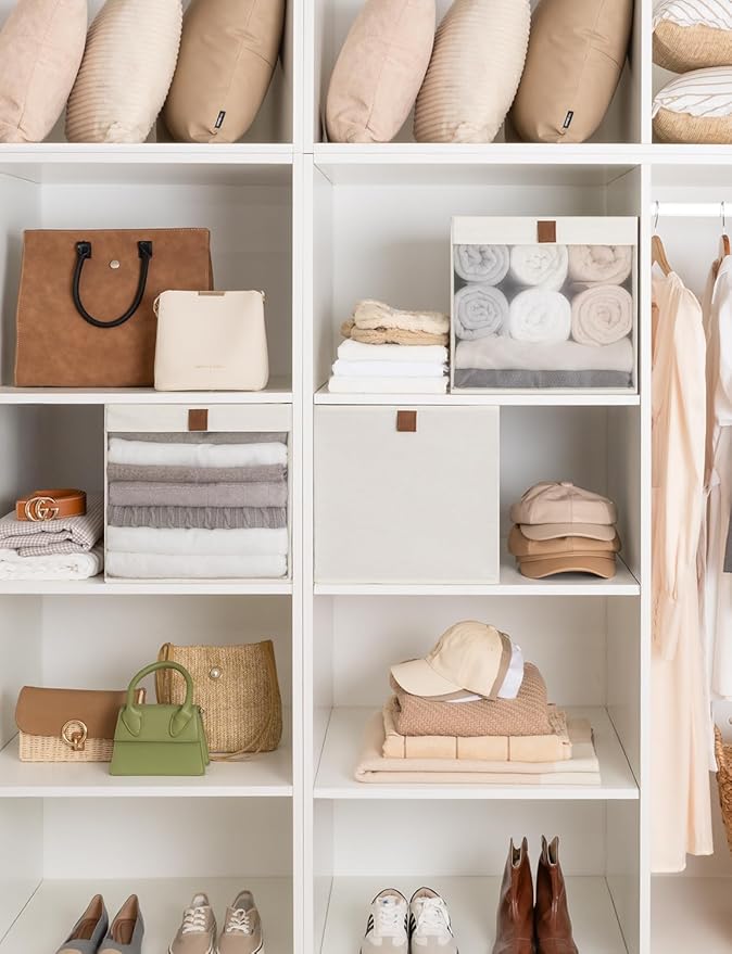 - See-Through Window: Unique transparent window design allows you to quickly find your items without opening the cube storage bin. Ideal for both visibility and discretion, simply flip to the back if you prefer to hide stored contents. These clear storage bins keep your closet organizers and storage looking tidy and organized.