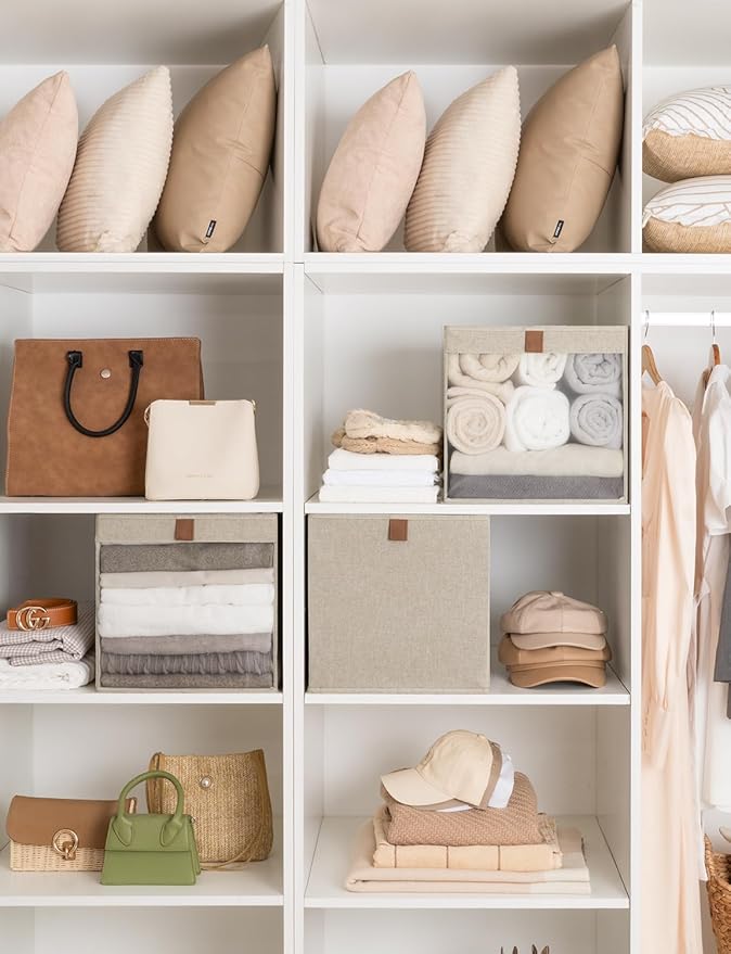 - See-Through Window: Unique transparent window design allows you to quickly find your items without opening the cube storage bin. Ideal for both visibility and discretion, simply flip to the back if you prefer to hide stored contents. These clear storage bins keep your closet organizers and storage looking tidy and organized.