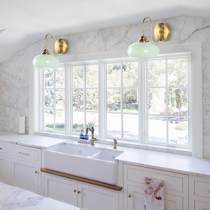KCO Lighting Vintage Green Wall Sconces Light Set of Two Gold Globe Wall Sconce Mid Century Modern Bathroom Vanity Light Fixture Brass Indoor Wall Sconce Light Fixture (2 Pack)