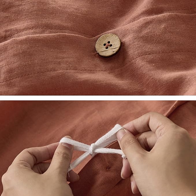 Bedsure Linen Duvet Cover Queen - Linen Cotton Blend Bedding Set, Soft & Cozy, 3 Pieces, 1 Duvet Cover 90x90 Inches and 2 Pillowcases, Burnt Orange Color Cooling Bedding, Comforter Sold Separately