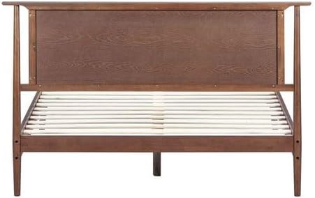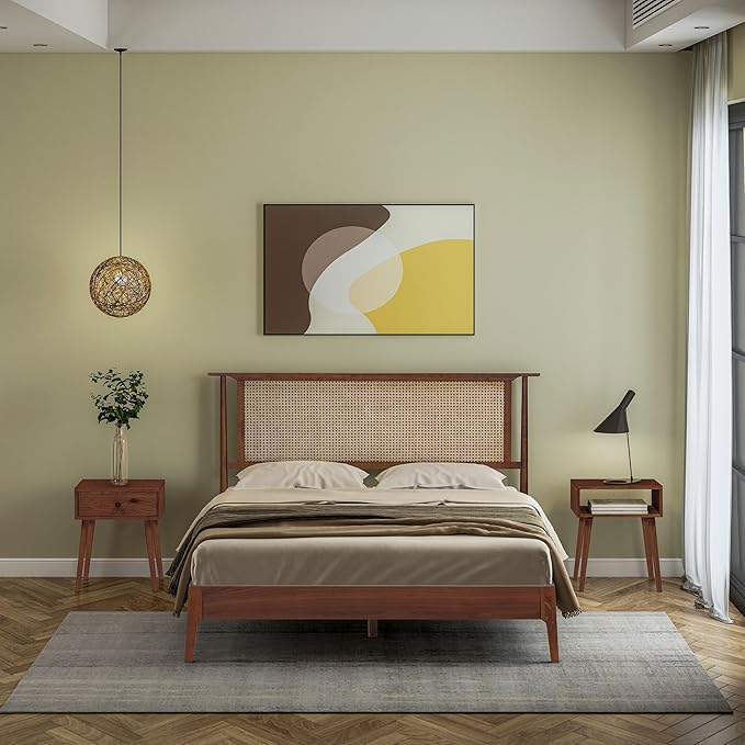NTC Ruby Wooden Bed Frame with Headboard and Natural Rattan, Solid Oak/Rubber Wood Foundation with Silent Slats, 1000 Lb Capacity, Effortless Assembly (Natural Cane - Dark Walnut, Queen)