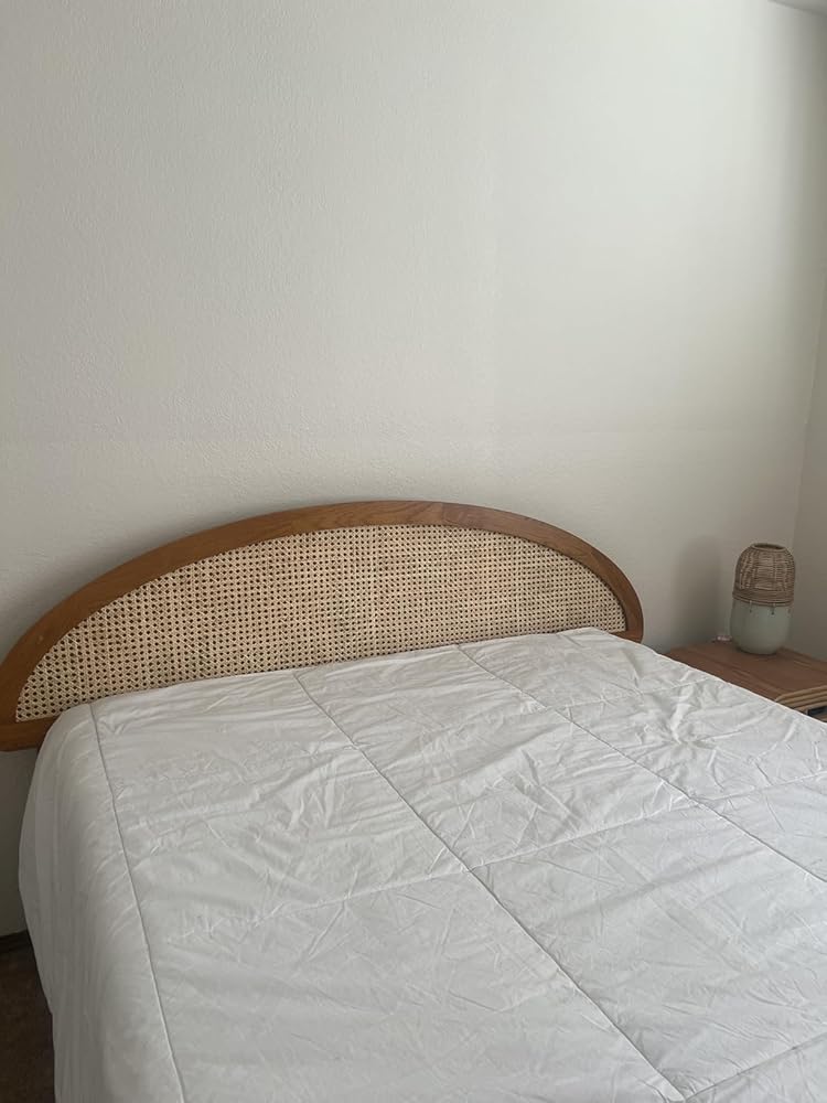 The rattan bed frame has a nice look overall, but there were a few disappointments. The headboard and a couple of other pieces arrived damaged, and the headboard height is lower than I expected. I have a 14" mattress on it (no box spring), and the mattress completely overshadows the headboard — it really needs a few more inches of height to be functional.I initially wanted to return it, but missed the return window. Unfortunately, since the frame is sold as a full unit, you can’t just request replacement parts. The upside is that Amazon sent me another full set and allowed me to swap out the damaged parts, but it’s definitely more work than I wanted to deal with.If you love the style and don’t mind the low headboard (or using a thinner mattress), it might work for you. Just be aware of the potential for damage and the hassle if anything arrives broken.