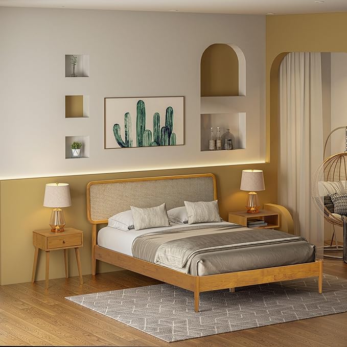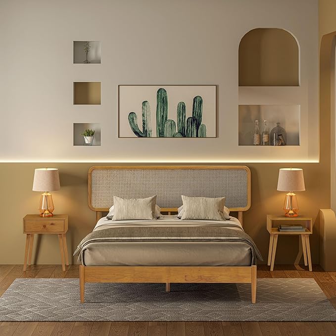 - PREMIUM MATERIALS: Crafted from high-quality Oak Wood/Rubber Wood and Natural Rattan, this bedframe exudes elegance and durability, ensuring long-lasting beauty and sturdiness